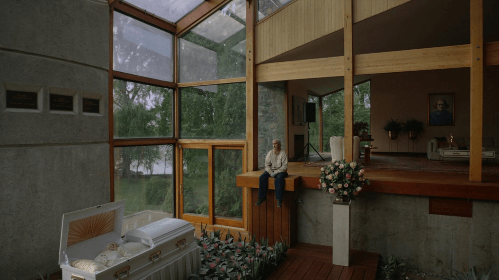 After a nap, Beau is awakened to find someone at the front door arriving late for Mona’s service. It’s Elaine (Parker Posey), and there is still an electric connection between the pair. They reconnect before getting intimate; Beau begins to freak out, fearing he will die if he climaxes, but the terror gradually fades as he realizes he’s finished without any adverse health effect. Are things finally looking up for our poor protagonist?