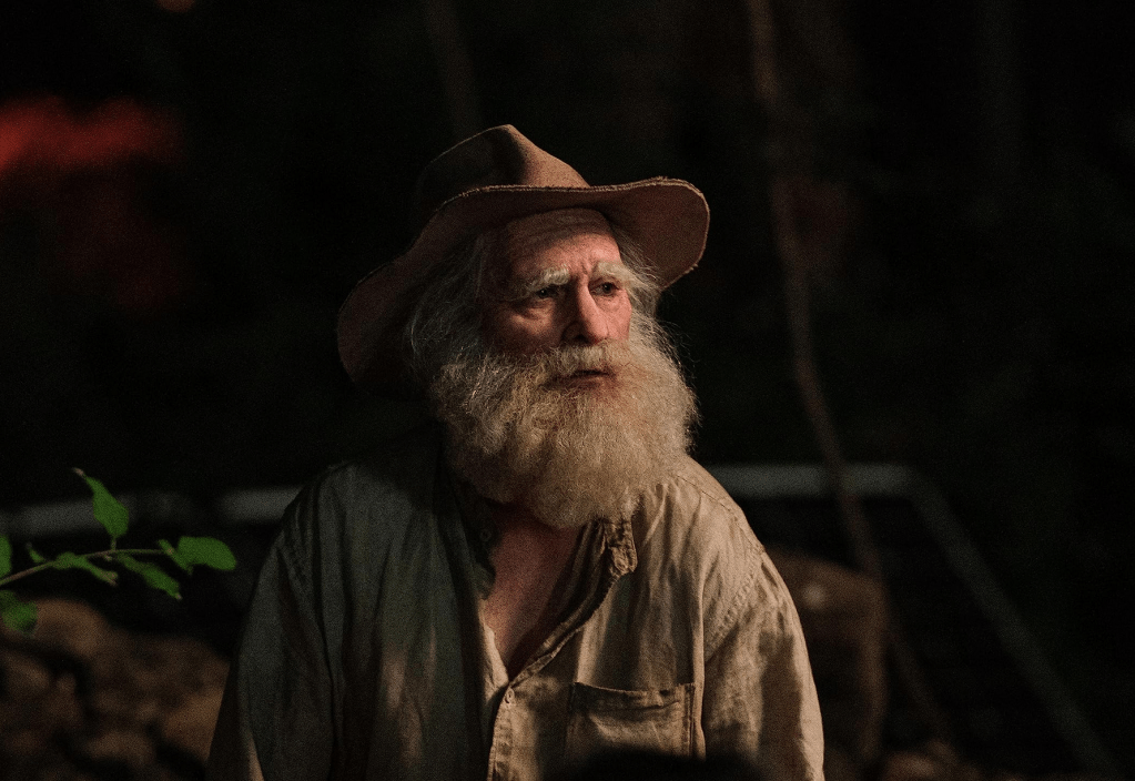 Deep in the woods and seemingly out of Jeeves’ clutches, Beau meets a traveling theater troupe known as “The Orphans of the Forest” — a pregnant woman named Penelope (Hayley Squires) tends to his wounds from the chase and comforts him.
